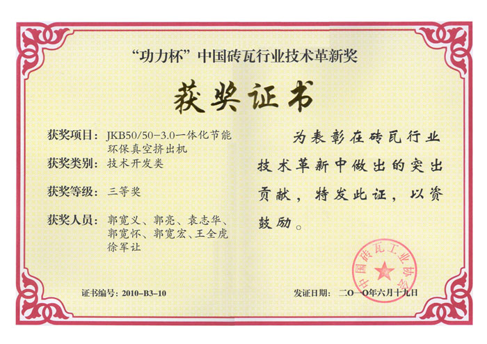 功力杯 中國磚瓦行業(yè)技術(shù)革新獎(jiǎng).
