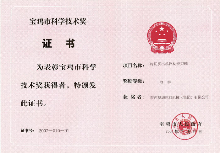 陜西省建材行業(yè)技術(shù)革新獎(jiǎng)