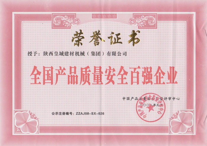 全國(guó)質(zhì)量安全百強(qiáng)企業(yè)